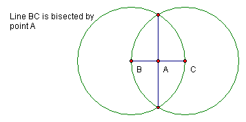 To bisect a line segment, do the following: (This construction also makes the perpendicular bisector of a given segment (in this case segment BC)).