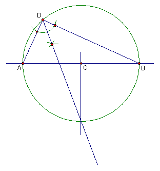 3. Make the angle bisector of angle ADB. It intersects the circle at the same point as the angle bisector in "step 2"