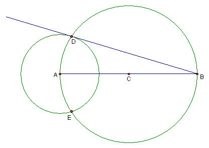 To construct a tangent to a circle A from a point B, draw a line segment AB and bisect it with point C. Draw circle C with radius AC or CB. Where the circle intersects circle A, put a point D and a point E. You can draw line segment BD to make the tangent (shown), or you can draw line segment BE to make the other tangent.