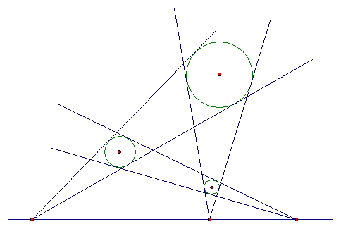 The common tangents to three circles meet on a straight line. This theorem was discovered by a mathematican by the last name of Monge.