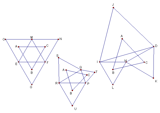 If on any triangle's (MEF, QRP, or DIH) sides equilateral triangles are constructed, ((OME, MNF, EFG), (SRQ, TQP, URP), or (JID, LIH, KHD), and the center of these triangles are found, (A, B, and C). Then triangles ABC are equilateral.