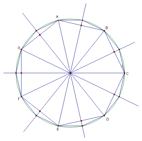 Start with a heptagon. Then construct the midpoints of all of the sides. Draw lines through the midpoints and the opposite vertices of the heptagon. Where they intersect the circle in which the heptagon can be described, put points. Connect all of the points in sequence to give a 14-gon.