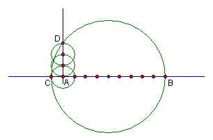 4. Bisect segment CB and draw a circle about it with a radius to C or B.