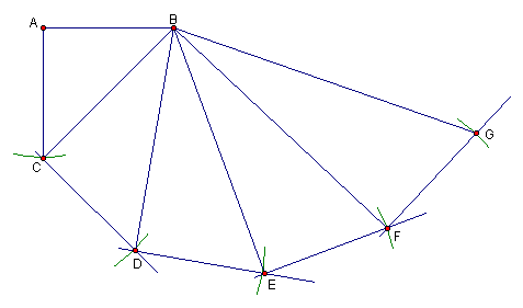 7. Draw a perpendicular to FB at F to make a line FG. Mark off line segment FG equal to AB.